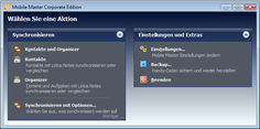 Mobile Master can be configured according to the requirements and restrictions of your company, e.g. disable file copy, support only a set of mobile phones, use predefined settings, or reduce the user interface.